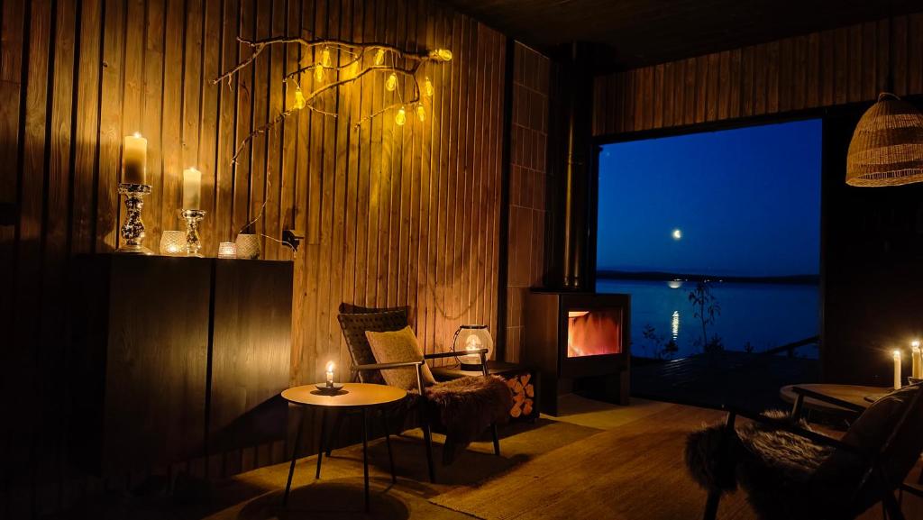 What truly sets Arctic Aurora Hideaway apart is its unique location by the lake. From your window or terrace, you can enjoy uninterrupted views across Norvajärvi toward the northern horizon. In winter, this becomes a front-row seat to one of nature’s most spectacular phenomena – the Northern Lights dancing across the sky. In summer, the same horizon glows under the enchanting Midnight Sun, bathing the landscape in soft, endless light.